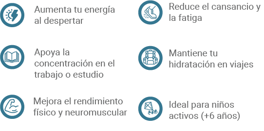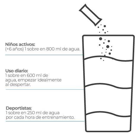 A partir de los 6 años, los niños activos pueden tomar 1 stick al día en 800 ml de agua para recuperar minerales y energía.
